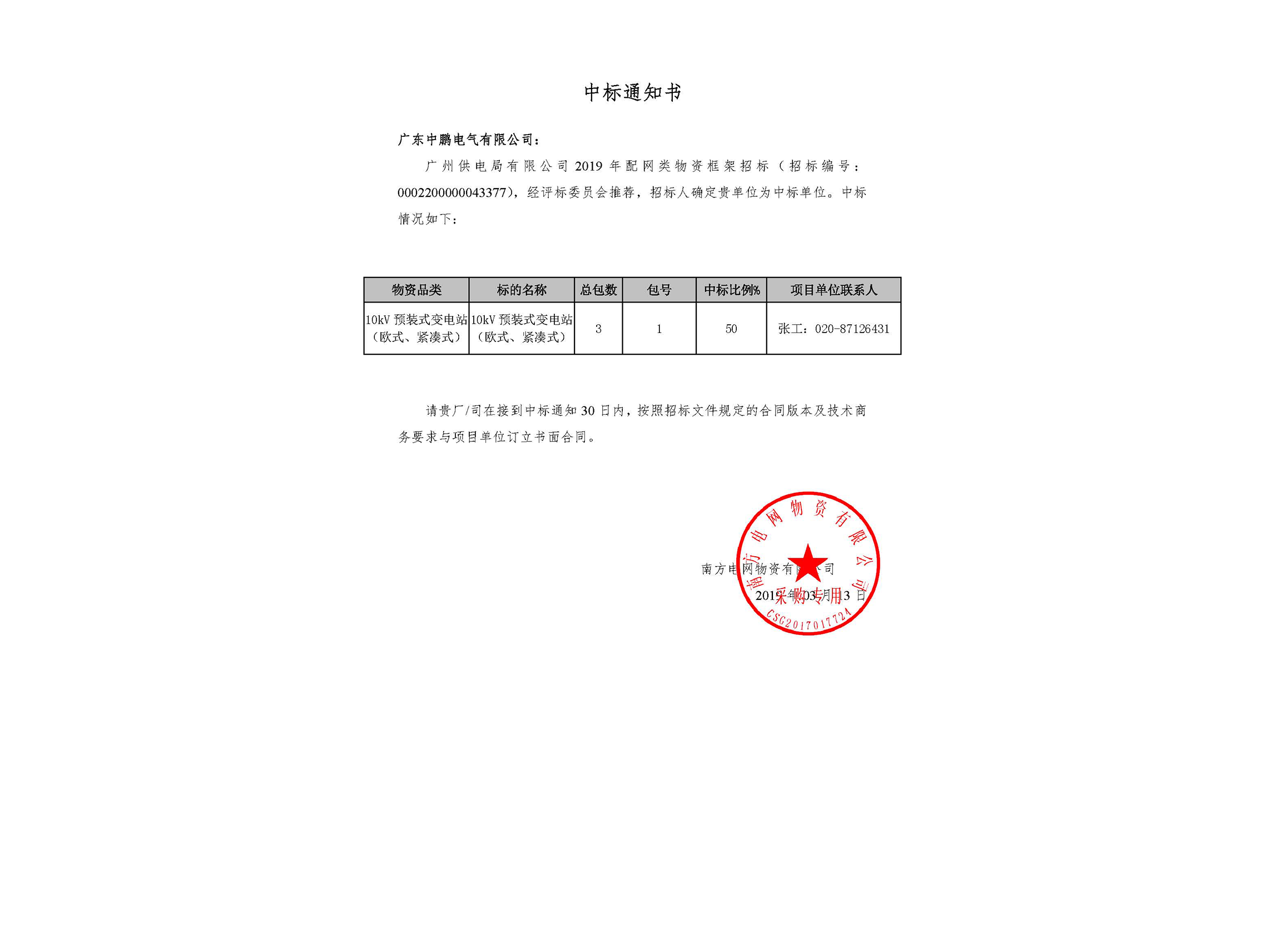 • European Change - Successful Notice-Guangzhou Power Supply Bureau